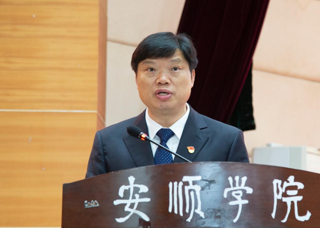 安顺学院校长陈云坤以《把握新机遇 开启新征程 奋力书写安顺学院转型升级新篇章》为题作报告