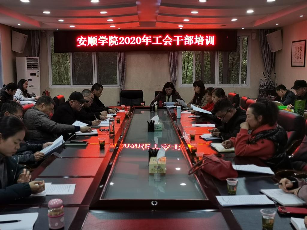 11月23日下午,安顺学院2020年工会干部培训会在行政楼二楼会议室召开,安顺学院副校长韦英、各二级学院及附中党委书记、各分工会主席和工会全体成员参加会议。